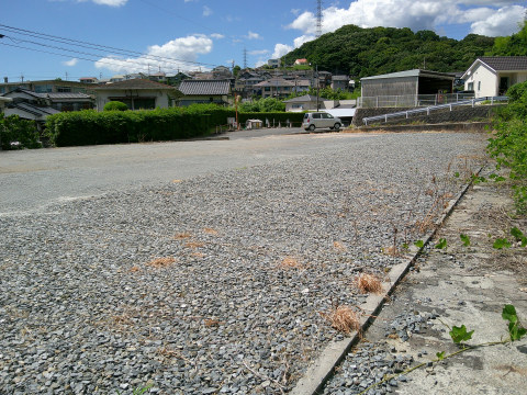 資材置き場・駐車場向き 車両乗入れ幅約7.5m 前面道路幅員4m前後、平坦、砂利敷き